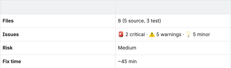What it does is front-load the mechanical feedback; the pattern violations, the clear issues, the comments that would otherwise read "per our standards, this should be X." Reducing that category of feedback allows the actual review conversation to concentrate on what genuinely requires human judgment: design decisions, tradeoffs, product implications, the things that only come from knowing the codebase and the people who depend on it.